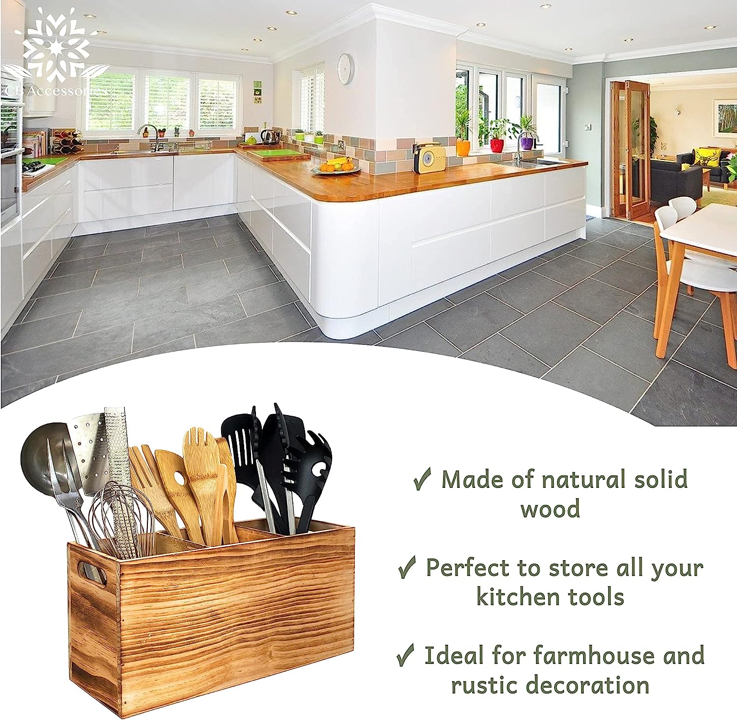 - The utensil organizer has three compartments to keep things in place. Ideal for Knives, Spatulas, Tongs, Whisks, Ladles, Skimmers, Peelers, Bottle Openers, Silverware or any other gadgets