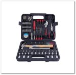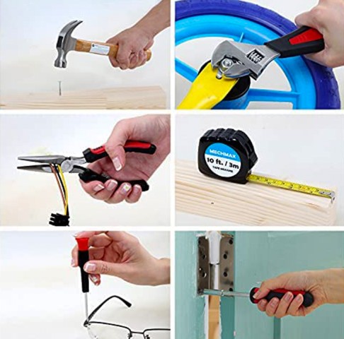 VARITETYSet Includes claw hammer, soft grip adjustable wrench, long nose pliers, measuring tape, 3/8 inch drive ratchet handle, sockets, screwdriver bits, hex key wrenches, to react home basic projects |