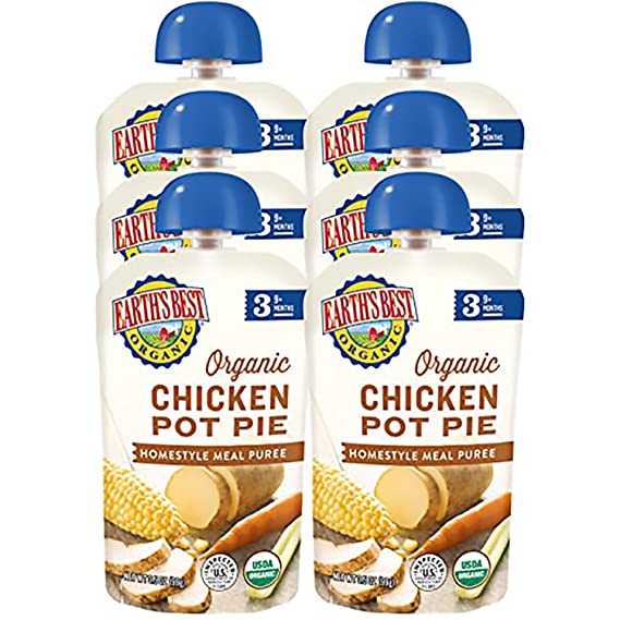 - ORGANIC CHICKEN POT PIE PUREE: Includes six 3.5 oz pouches of Earth’s Best Organic Homestyle Meal Puree