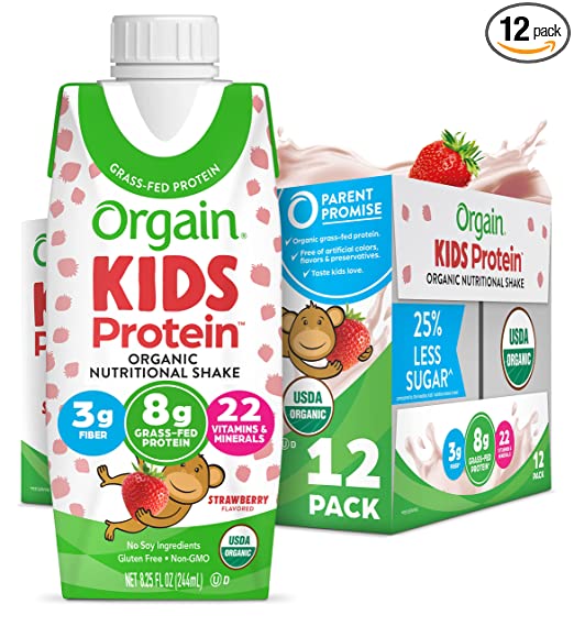 - Includes 12 (8.25 ounce) ready to drink Orgain Kids Protein Organic Strawberry Nutritional Shakes